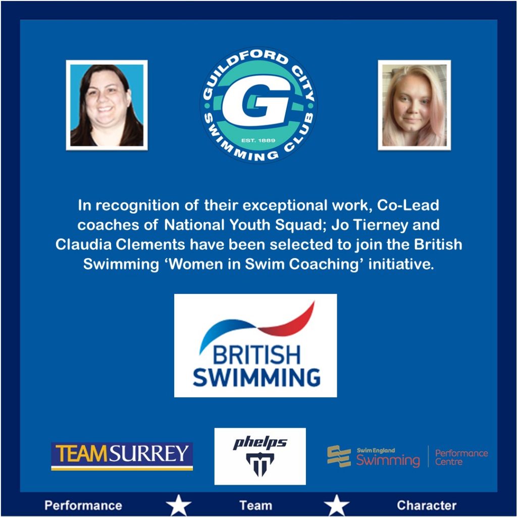 In recognition of their exceptional work, Co-Lead coaches of National Youth Squad; Jo Tierney and Claudia Clements have been selected to join the British Swimming ‘Women in Swim Coaching’ initiative.