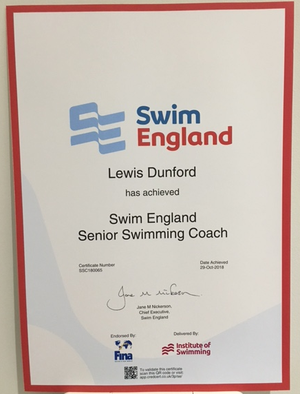 We are delighted to announce that Lewis Dunford has attained his L3 swimming Coach award.